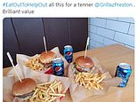 People were enjoying the benefits this morning, with BBC presenter Jeremy Buxton tweeting: ‘Loving the UK government Eat Out To Help Out offer – family breakfast at Manchester Airport was half price! Thanks Rishi Sunak.’