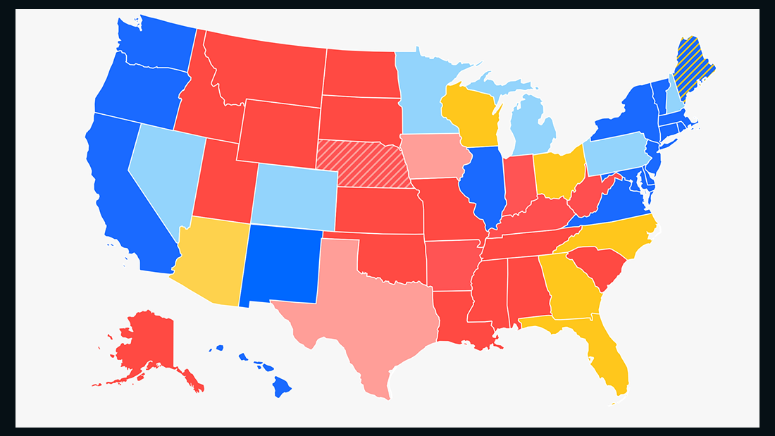 Biden’s quest for the White House starts with a solid base of 203 electoral votes from 16 states and the District of Columbia. When you add in the 65 electoral votes that are leaning in his direction, it brings his total to 268 electoral votes — just 2 away from winning the presidency.