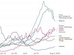 The seven-day rolling average for each country today or yesterday compared to two weeks ago, on July 22: