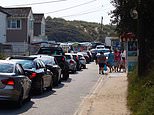 Huge queues also formed around Bournemouth (social media footage pictured) – but drivers were one step behind the those who camped out along the sea front this morning to secure their spot on the shore