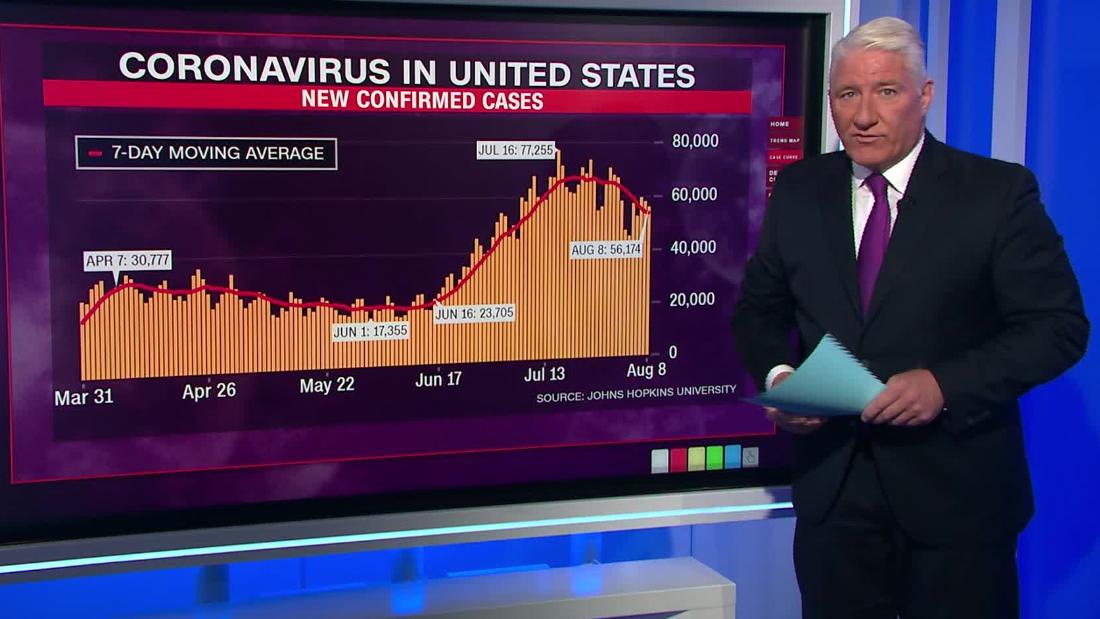 ‘);if (Modernizr && !Modernizr.phone) {$owlFirstItem.find(‘.media__icon’).hide();}}CNN.Videx.Metadata.init({dateCreated: videocardContents.dateCreated,descriptionText: videocardContents.descriptionText,duration: videocardContents.duration,sourceLink: videocardContents.sourceLink,sourceName: videocardContents.sourceName,title: videocardContents.headlineText},{videoCollectionDivId: ‘cn-1k9crc1’,videoDescriptionDivId: ‘js-video_description-1k9crc1’,videoDurationDivId: ‘js-video_duration-1k9crc1’,videoTitleDivId: ‘js-leaf-video_headline-1k9crc1’,videoSourceDivId: ‘js-video_sourceName-1k9crc1’});if (CNN.Utils.exists(videocardContents.showName)) {if (CNN.Utils.exists(videocardContents.showUrl)) {showDetailsSpanContent = ‘‘ + videocardContents.showName + ‘ | ‘;} else {showDetailsSpanContent = videocardContents.showName + ‘ | ‘;}}fastdom.measure(function getShowInfo() {var $show = jQuery(‘.metadata__show’),$isShowDetailsSpanExists = $show.find(‘span’).hasClass(‘metadata–show__name’),$showName = jQuery(‘.metadata–show__name’);fastdom.mutate(function updateShowInfo() {if (!$isShowDetailsSpanExists) {$show.prepend(‘‘ + showDetailsSpanContent + ‘‘);} else {$showName.html(showDetailsSpanContent);}});});if (typeof (history) !== ‘undefined’ && typeof (history.replaceState) !== ‘undefined’) {history.replaceState(”, ”, videocardContents.url);document.title = videocardContents.headlineText ? videocardContents.headlineText : ”;}}function getCurrentVideoCardContents(currentVideoId) {var containerContents = [{“branding”:””,”cardContents”:{“additionalSections”:[“us”],”auxiliaryText”:””,”bannerText”:[],”bannerHasATag”:false,”bannerPosition”:””,”brandingLink”:””,”brandingImageUrl”:””,”brandingTextHead”:””,”brandingTextSub”:””,”cardSectionName”:”health”,”contentType”:””,”cta”:”share”,”descriptionText”:[“CNN’s u003ca href=”https://www.cnn.com/profiles/john-king-profile” target=”_blank”>John Kingu003c/a> breaks down the latest coronavirus numbers in the US, where cases are trending up in six states and down in 25.”],”descriptionPlainText”:”CNN’s John King breaks down the latest coronavirus numbers in the US, where cases are trending up in six states and down in 25.”,”headlinePostText”:””,”headlinePreText”:””,”headlineText”:”John King breaks down latest trends in US Covid-19 cases”,”headlinePlainText”:”John King breaks down latest trends in US Covid-19 cases”,”iconImageUrl”:””,”iconType”:”video”,”isMobileBannerText”:false,”kickerText”:””,”maximizedBannerSize”:[],”media”:{“contentType”:”image”,”type”:”element”,”cutFormat”:”16:9″,”elementContents”:{“caption”:””,”imageAlt”:””,”imageUrl”:”//cdn.cnn.com/cnnnext/dam/assets/200809091508-king-magic-wall-0809-large-169.jpg”,”label”:””,”galleryTitle”:””,”head”:””,”source”:”CNN”,”photographer”:””,”cuts”:{“mini”:{“width”:220,”type”:”jpg”,”uri”:”//cdn.cnn.com/cnnnext/dam/assets/200809091508-king-magic-wall-0809-small-169.jpg”,”height”:124},”xsmall”:{“width”:307,”type”:”jpg”,”uri”:”//cdn.cnn.com/cnnnext/dam/assets/200809091508-king-magic-wall-0809-medium-plus-169.jpg”,”height”:173},”small”:{“width”:460,”type”:”jpg”,”uri”:”//cdn.cnn.com/cnnnext/dam/assets/200809091508-king-magic-wall-0809-large-169.jpg”,”height”:259},”medium”:{“width”:780,”type”:”jpg”,”uri”:”//cdn.cnn.com/cnnnext/dam/assets/200809091508-king-magic-wall-0809-exlarge-169.jpg”,”height”:438},”large”:{“width”:1100,”type”:”jpg”,”uri”:”//cdn.cnn.com/cnnnext/dam/assets/200809091508-king-magic-wall-0809-super-169.jpg”,”height”:619},”full16x9″:{“width”:1600,”type”:”jpg”,”uri”:”//cdn.cnn.com/cnnnext/dam/assets/200809091508-king-magic-wall-0809-full-169.jpg”,”height”:900},”mini1x1″:{“width”:120,”type”:”jpg”,”uri”:”//cdn.cnn.com/cnnnext/dam/assets/200809091508-king-magic-wall-0809-small-11.jpg”,”height”:120}},”responsiveImage”:true,”originalImageUrl”:”//cdn.cnn.com/cnnnext/dam/assets/200809091508-king-magic-wall-0809.jpg”},”duration”:”3:55″},”noFollow”:false,”overMediaText”:””,”sectionUri”:””,”showSocialSharebar”:false,”shortUrl”:””,”statusText”:””,”statusColor”:””,”targetType”:””,”timestampDisplay”:””,”timestampUtc”:””,”lastModifiedText”:”1 h”,”lastModifiedState”:””,”type”:”card”,”url”:”/videos/health/2020/08/09/coronavirus-magic-wall-cases-nearing-5-million-king-ip-vpx.cnn/video/playlists/coronavirus/”,”width”:””,”webDisplayName”:”Health”,”height”:””,”videoCMSUri”:”/video/data/3.0/video/health/2020/08/09/coronavirus-magic-wall-cases-nearing-5-million-king-ip-vpx.cnn/index.xml”,”videoId”:”health/2020/08/09/coronavirus-magic-wall-cases-nearing-5-million-king-ip-vpx.cnn”,”adSection”:”const-video-leaf”,”dateCreated”:”7:52 AM ET, Sun August 9, 2020″,”sourceName”:”CNN”,”sourceLink”:”https://www.cnn.com/”,”showName”:”Inside Politics”,”showUrl”:”/shows/inside-politics”,”videoCollectionUrl”:”/video/playlists/coronavirus/”},”contentType”:”video”,”maximizedBanner”:false,”type”:”card”,”autoStartVideo”:false},{“branding”:””,”cardContents”:{“additionalSections”:[“health”],”auxiliaryText”:””,”bannerText”:[],”bannerHasATag”:false,”bannerPosition”:””,”brandingLink”:””,”brandingImageUrl”:””,”brandingTextHead”:””,”brandingTextSub”:””,”cardSectionName”:”us”,”cont