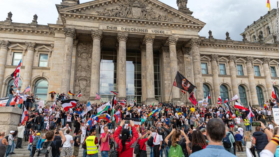 Speaking on a stage by Germany’s parliament, the Reichstag, she egged the crowds on to occupy the building. “Trump is in Berlin,” the woman falsely said, according to a video posted of her speech on social media. “Go up there and sit peaceably on [the] stairs and show President Trump … that we want world peace and that we are sick of it,” she shouted from the stage by the Reichstag. CNN has attempted to reach the woman, identified as Tamara K. in German media, for comment.