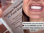The trend is sweeping across the internet, with US user Sher sharing a video of her using the chemical to whiten her teeth (pictured)