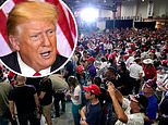 No social distancing and few face masks on Donald Trump’s supporters in packed warehouse rally as campaign defends holding its first indoor event in months