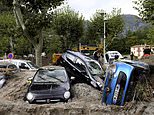 A number of cars were washed up and submerged in mud in Breil-sur-Roya in the south east of France as floods caused devastation