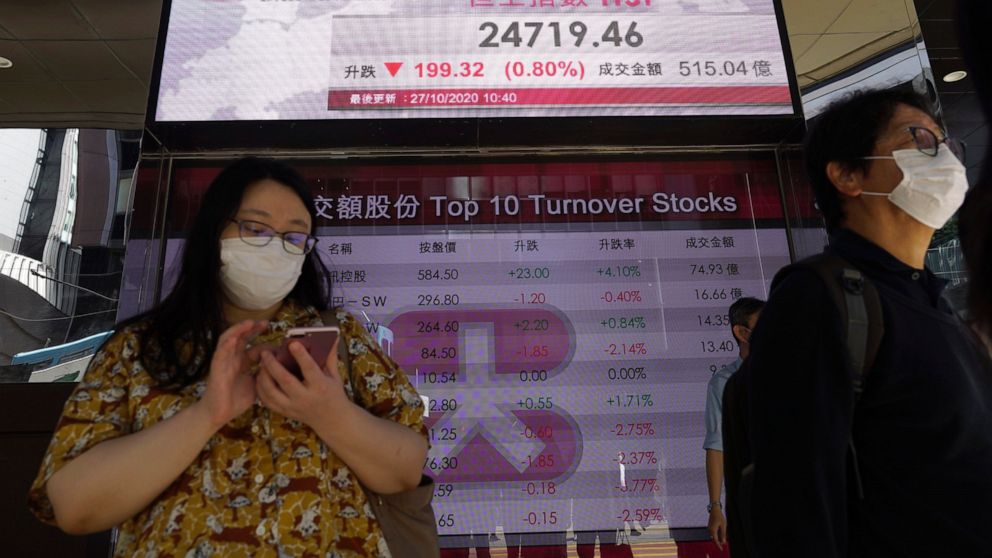 Caution continues to hang over markets. Governments have begun to impose restrictions on businesses and other activities to help curb surging infections. That could choke off improvements seen since the summer. Fresh pandemic precautions are also drawing a public backlash despite spiking levels of illness in European countries.