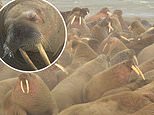 Massive pod of 3,000 walruses is spotted on Russian peninsula, giving scientists hope that the ‘nearly threatened’ population is recovering