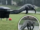 Moment gigantic alligator is seen stomping across Florida golf course