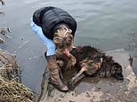 The moment a hero passer-by rescued Bella the dog from a river after jumping in to save her when she saw owner tie the Belgian Shepherd to a rock and throw her in