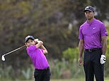 Tiger Woods’ 11-year-old son Charlie sinks an eagle after landing 170-yard shot three feet from the hole and trash-talks his competitors during TV debut at PNC Championship
