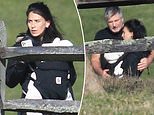 The SNL star was seen clambering over a wooden fence post and, at one point, put a protective arm around his wife as she leaned in to speak to him.