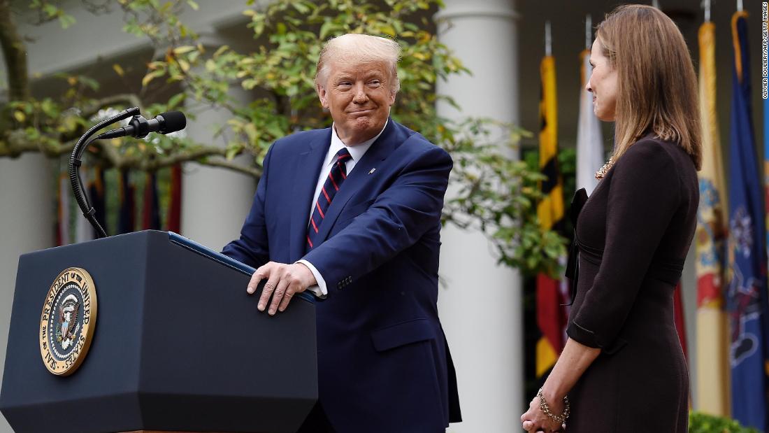 Judge Amy Coney Barrett speaks after being nominated to the US Supreme Court by President Donald Trump in the Rose Garden of the White House in Washington, DC on September 26, 2020.