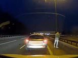 This is the shocking moment a man pulls to a halt on the M1 motorway forcing the car behind to brake heavily to avoid a collision