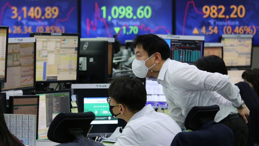 In Asia, South Korea’s Kospi rose 1.5%, Hong Kong’s Hang Seng slipped 0.1% and stocks in Shanghai added 1.1%.