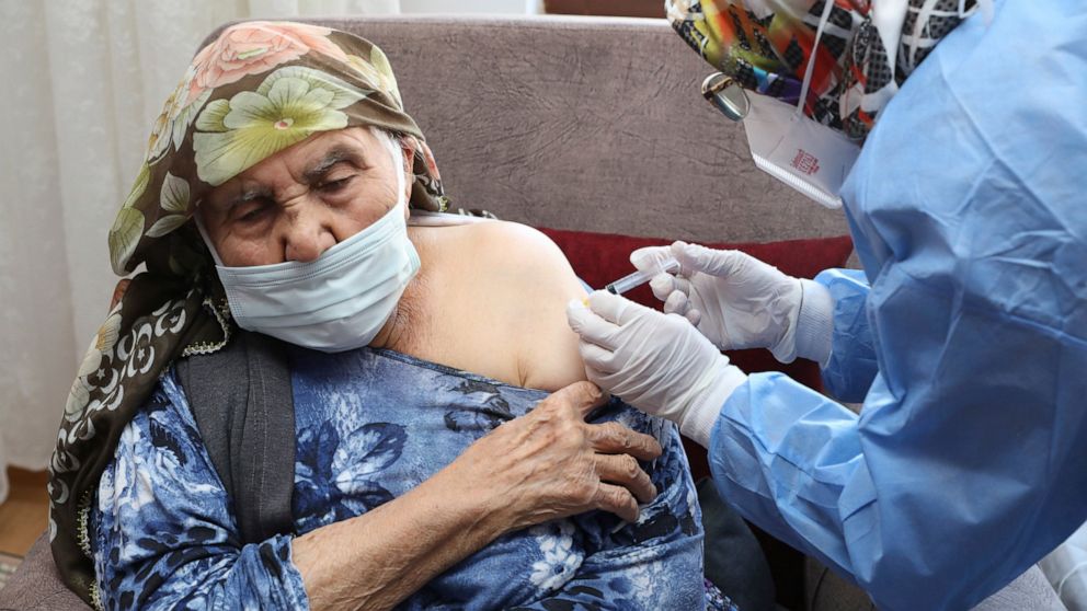 Turkey has so far received 3 million doses and has vaccinated nearly 2 million people, prioritizing health workers and the elderly, since its program started a week ago. Erdogan has said he expects a Turkish-developed vaccine to be available in May.