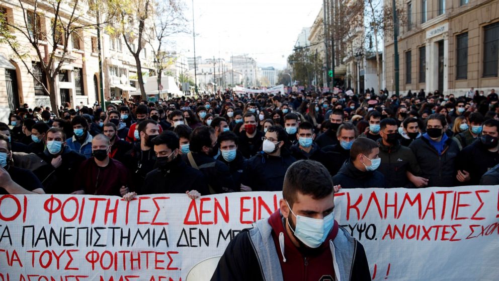The main opposition party, the left-wing Syriza, called the ban “arbitrary and undemocratic,” while the Greek Communist Party said it would continue to support student demonstrations planned later this week. Pandemic-related deaths have dropped sharply in January from a spike in late 2020, but the government says it will maintain lockdown restrictions through the winter. The protest ban ends Feb. 1.