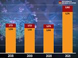 Today’s figures also show that ICUs are more than 70 per cent busier than they have been at any time over the past five years — with 5,446 critical care beds occupied on January 24, the most recent day statistics are available for. For comparison, there were 3,034 critically-ill patients at the same time last winter, and the average over the last four years stood at 3,183.