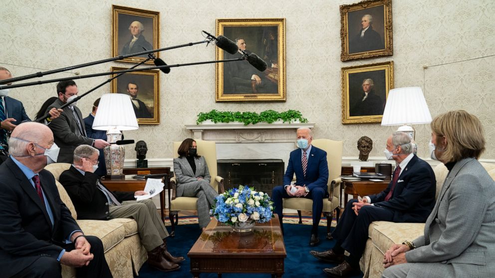 Also at the meeting were Vice President Kamala Harris, Transportation Secretary Pete Buttigieg virtually, Republican Sen. Jim Inhofe of Oklahoma and Democratic Sen. Ben Cardin of Maryland.