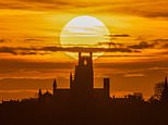 A spectacular sunrise this morning over Ely Cathedral in the Cambridgeshire Fens as a Saharan dust cloud affects the country