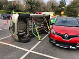 Elderly driver flips her Vauxhall Corsa onto its side while trying to park in Sainsbury’s