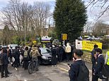 Police descended on Batley Grammar School in West Yorkshire today as dozens of furious Muslim parents protested outside after a teacher allegedly showed derogatory caricatures of the Prophet Muhammad during a religious education lesson