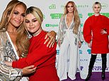 Jennifer Lopez puts on a busty display in a sparkling silver-and-white jumpsuit while Selena Gomez looks fierce in red as they lead the stars at the Global Citizen: Vax Live concert