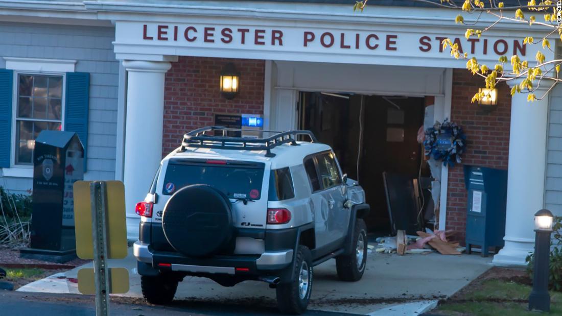 The man managed to drive through the steel double doors and make it inside the station, Leicester Police Chief Kenneth Antanavica said at the news conference.. By the time officers responded, the vehicle was back in front of the doors, Early said.