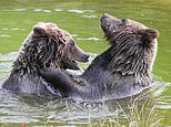 The female bears, named Snow White and Sleeping Beauty (pictured playing together), were euthanised by zookeepers after using a fallen tree to clamber into another enclosure, where they attacked a male boar