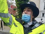 A police constable who shouted ‘Free Palestine’ and raised her fist (pictured) at a protest is named as a 20-year-old new recruit