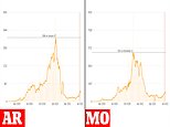 Arkansas is one of the states to see cases surge with a 52 percent rise from an average of 286 cases per day to 435 per day over the last two weeks, according to a DailyMail.com analysis of Johns Hopkins data.