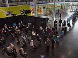 People wait to receive their Covid-19 vaccine at the NHS vaccine centre that has been set up at the Millennium Point centre in Birmingham