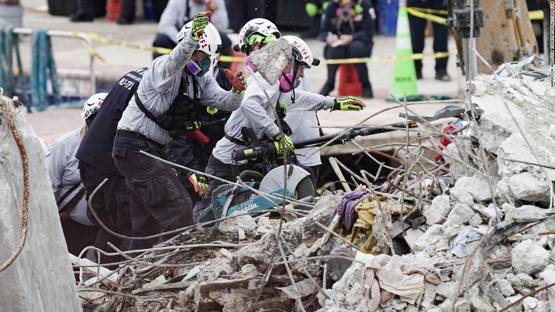 But officials are continuing to monitor weather conditions: as long as the wind gusts stay below 45 mph, search and rescue teams can continue their work, Miami-Dade Fire Rescue spokesperson Erika Benitez said. But if gusts reach that number, the teams will be called off the rubble pile.