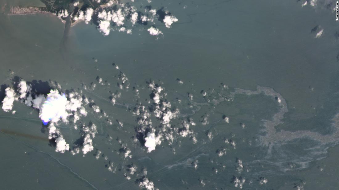 “What was observed was an unrecoverable, dissipating rainbow sheen that was approximately 11 miles in length,” Edwards said in an email to CNN. The source of the discharge is unknown, though, he said.