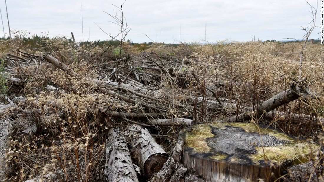 Viewed up close, this scene in the Reinhardswald nature park is equally desolate. Brittle sticks crunch underfoot and tree stumps dot the empty landscape, which stretches over some 50 acres.