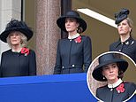 The Duchess of Cambridge joins Camilla and Sophie Wessex on balcony for sombre Remembrance Sunday service after the Queen was forced to pull out at last minute