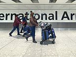 Health Secretary Sajid Javid has announced that flights from South Africa – as well as Namibia, Lesotho, Botswana, Eswatini and Zimbabwe – will be suspended from midday today. Pictured: Passengers arriving at Heathrow today (destination not known)