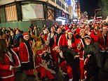 Pictures showed jubilant Britons decked out festive fancy dress, including partygoers dressed as Christmas elves, Santa Claus, Christmas crackers and angels, as they braced the icy temperatures to enjoy a boozy night out amid concerns of the Omicron super-mutant variant spreading.