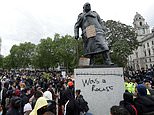 Imperial War Museum recently apologised for ending its Remembrance Sunday silence this year with a ‘woke’ rap attacking Sir Winston Churchill. Pictured: Statue of Churchill in Parliament Square defaced during protest in June 2020