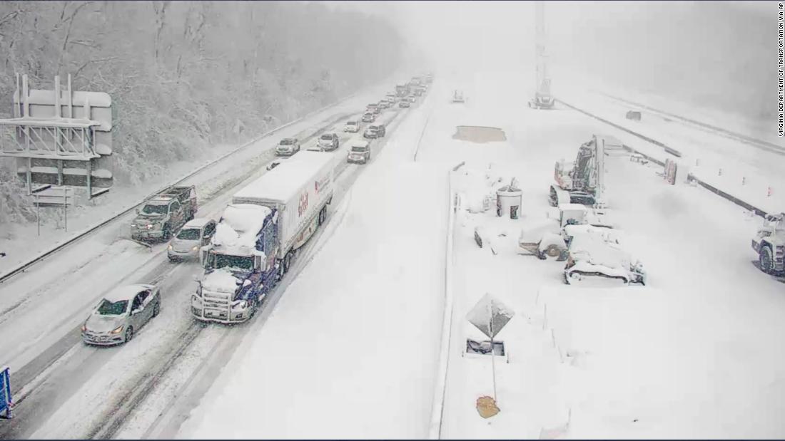 Authorities have been scrambling to clear a path for vehicles stuck on a major Virginia interstate after a storm dropped several inches of snow last night