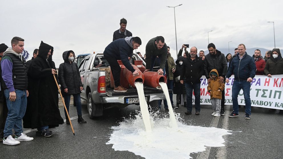 Greek farmers have already been blocking a major road connecting Larissa to the city of Kozani to the northwest for about ten days. On Sunday, they spilled milk on the road as part of their protest.