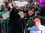 Clinton was met by protestors on Thursday as she entered the Times Square Sheraton ahead of her headline address at the convention.