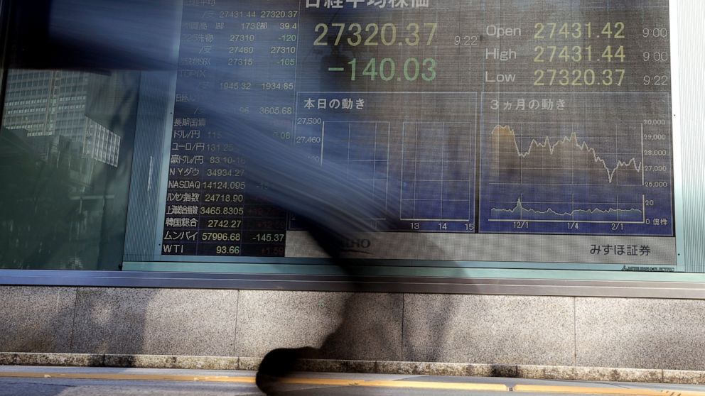Tokyo’s Nikkei 225 index lost 0.5% to 27,094.16, while the Hang Seng in Hong Kong gave up 0.6% to 24,647.07. The Kospi in Seoul lost 0.1% to 2,739.93. Australia’s S&P/ASX 200 declined 0.6% to 7,249.50.