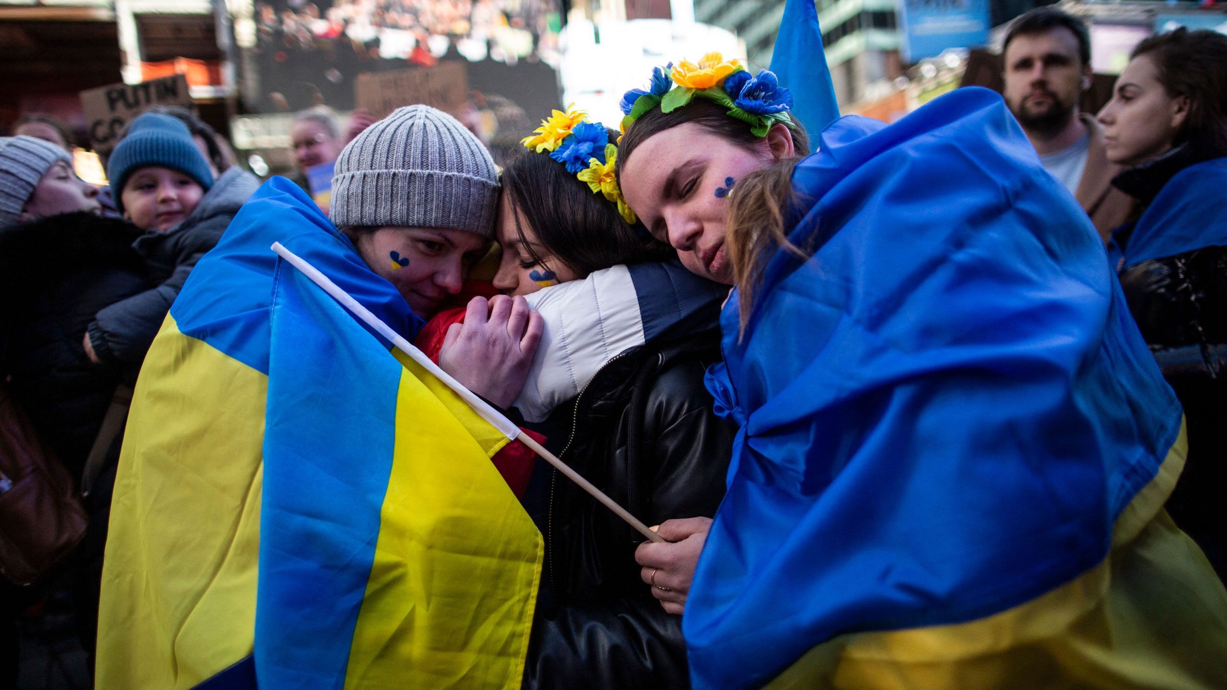 New York: Olga Ladygima, who is from Kyiv, told CNN at a rally in Times Square she hasn’t slept for the last three nights, worrying about her loved ones who remain in Ukraine.