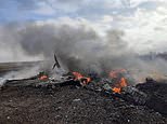Ukrainians post pictures of burning Russian fighter jet they say they shot down