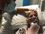 Mrs Handley pictured lying in a hospital bed struggling for breath as he daughter Victoria Morgan watches on