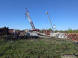 The ministry said two ‘powerful’ antennae that were re-broadcasting Russian radio were out of order, and shared images of them lying on the ground. There were no injuries, it added.