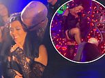 Interesting choice: She changed into a clinging black catsuit with a sparkling jeweled corset and tiny bottoms combination
