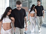 Hard to miss: The American model showed off her torso in a white crop top and low-slung joggers as she walked alongside former One Direction star Liam