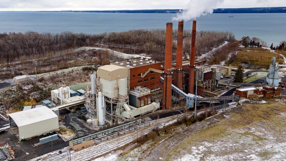 FILE – The Greenidge Generation bitcoin mining facility, in a former coal plant by Seneca Lake in Dresden, New York, is shown in this photo from Nov. 29, 2021. A milestone measure that would tap the brakes on the spread of cryptocurrency mining operations burning fossil fuels in New York has passed the state Legislature. The bill approved early Friday, June 3, 2022, by the state Senate would establish a two-year moratorium on new and renewed air permits for fossil fuel power plants used for energy-intensive “proof-of-work” cryptomining. (AP Photo/Ted Shaffrey, File)