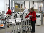 Data showed that 1,744 (65.4 per cent) died after requiring mechanical ventilation in critical care, while some 923 (34.6 per cent) on the same treatment were discharged (pictured, ventilators in Oxfordshire ready to be shipped to NHS hospitals)